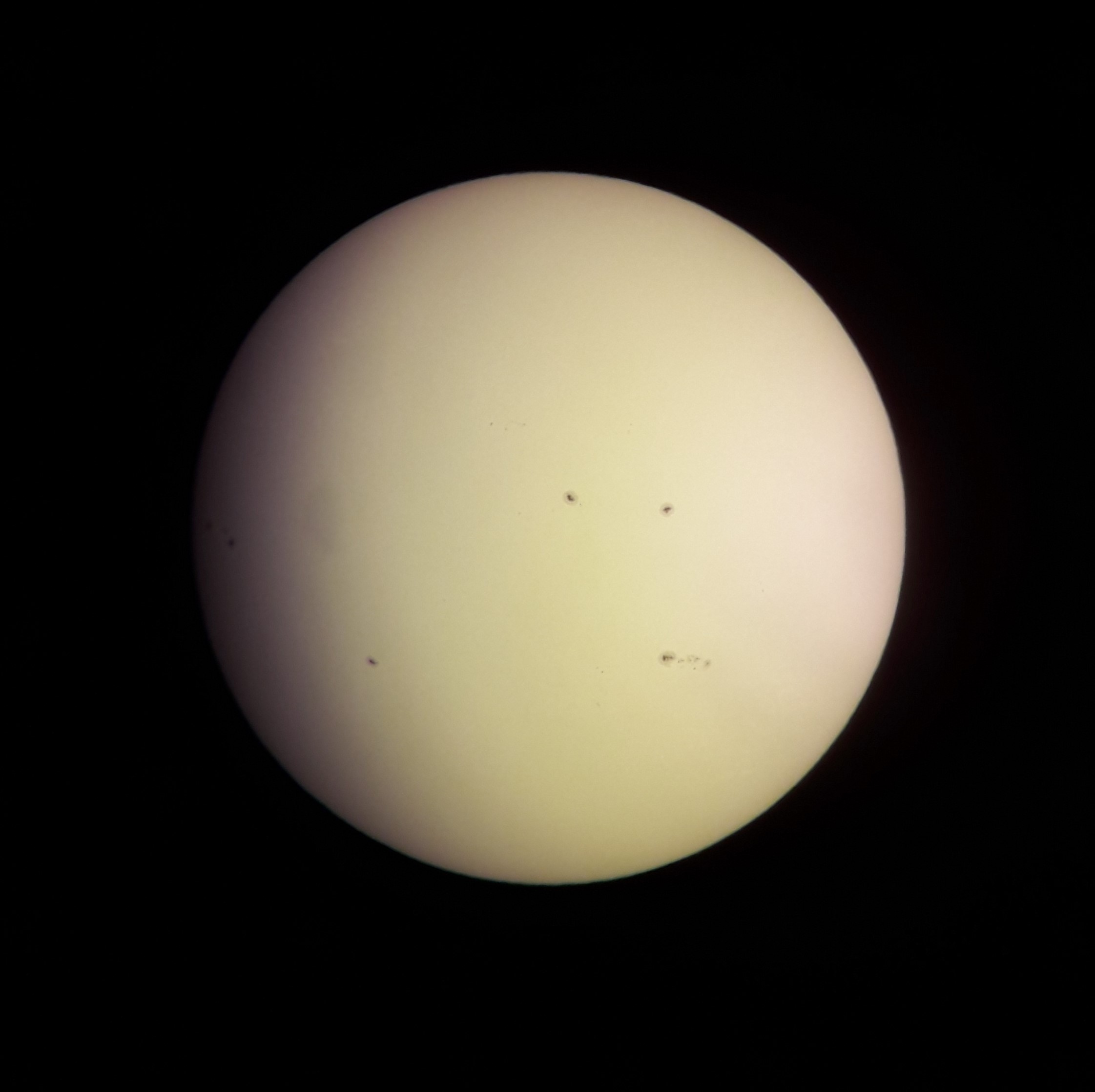 Uno scatto del sole realizzato dal nostro socio Giuseppe Lorenzi con il cellulare appoggiato all'oculare del telescopio. Ben visibili le macchie solari.