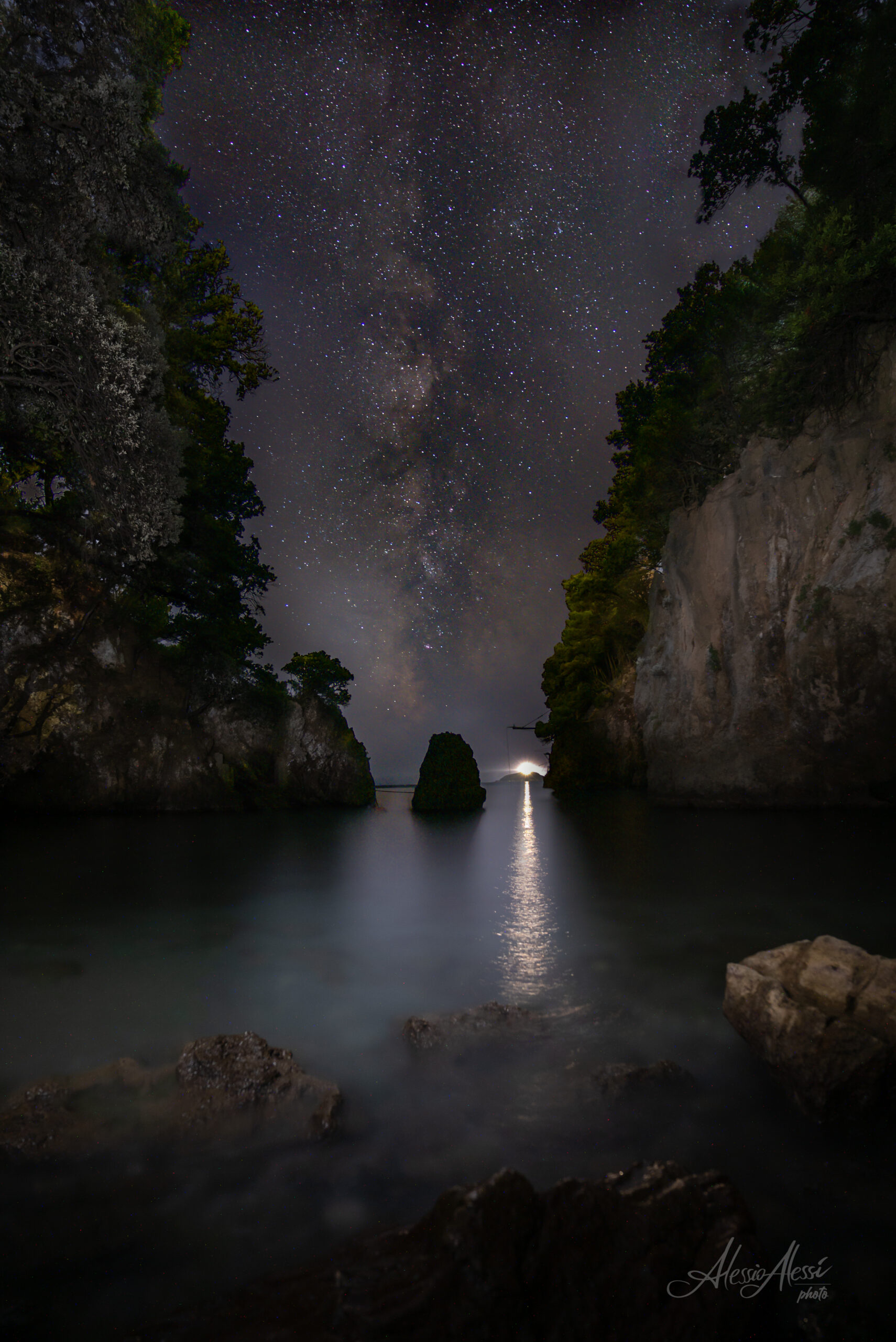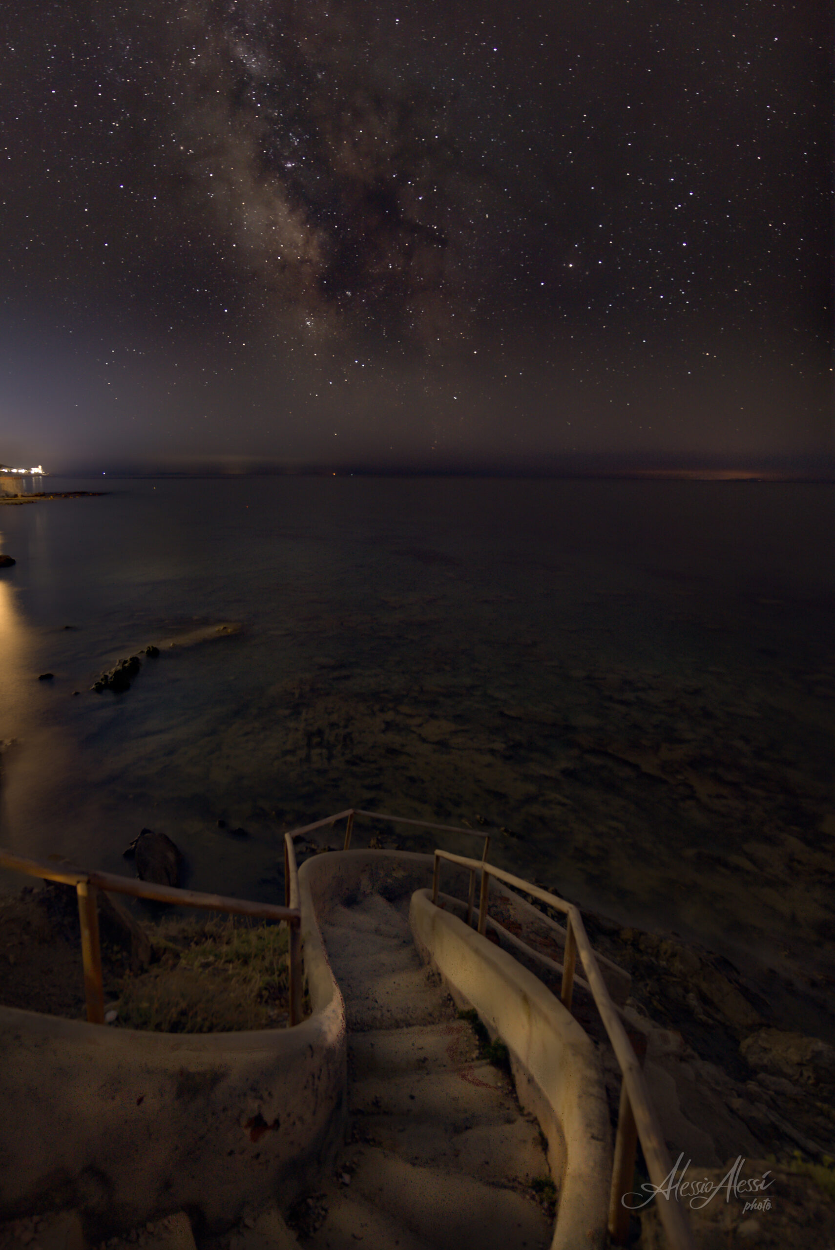 Una infinita scalinata da scendere (e soprattutto da risalire) per raggiungere la Caletta a Tellaro e scattare questa suggestiva immagine della Via Lattea.