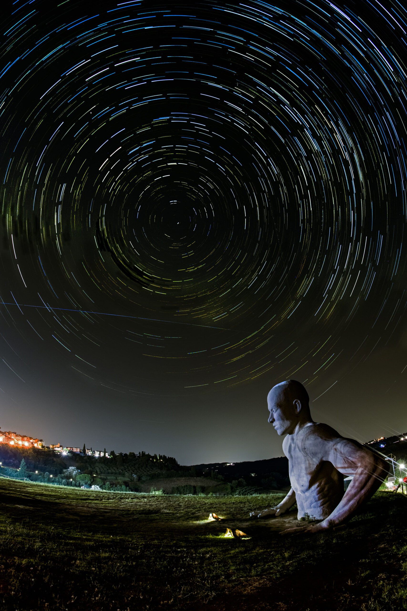 Una suggestiva immagine scattata dalla nostra socia Anna Musolino. Uno startrail sullo sfondo di una affascinante "presenza" nell'Anfiteatro Mazzola di Peccioli.