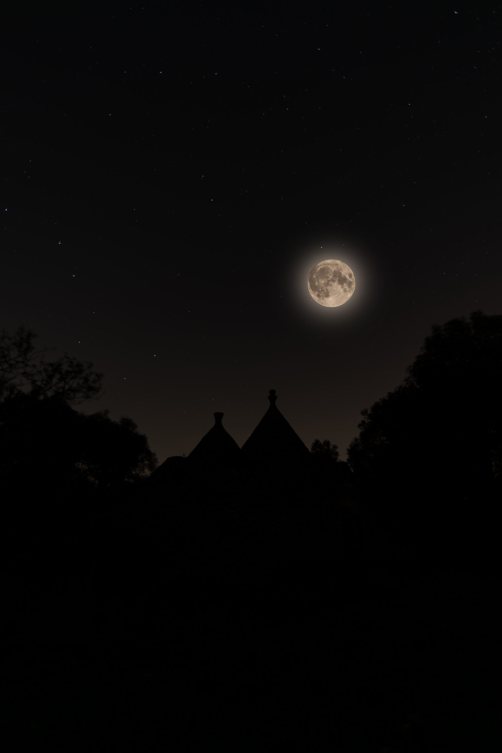 Il profilo dei trulli di San Michele Salentino in Puglia illuminati da un “pisana” superluna blu. Foto di Maria Argentiero